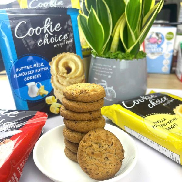 Một chiếc bánh quy nhỏ nhưng có thể mang lại niềm vui lớn. Cookie Choice 50g là sự lựa chọn hoàn hảo cho những ai yêu thích hương vị bơ sữa béo ngậy, giòn rụm chuẩn Thái Lan. Dù là bữa xế, buổi học, giờ làm việc hay những buổi hẹn hò cà phê, Cookie Choice đều là người bạn đồng hành lý tưởng.