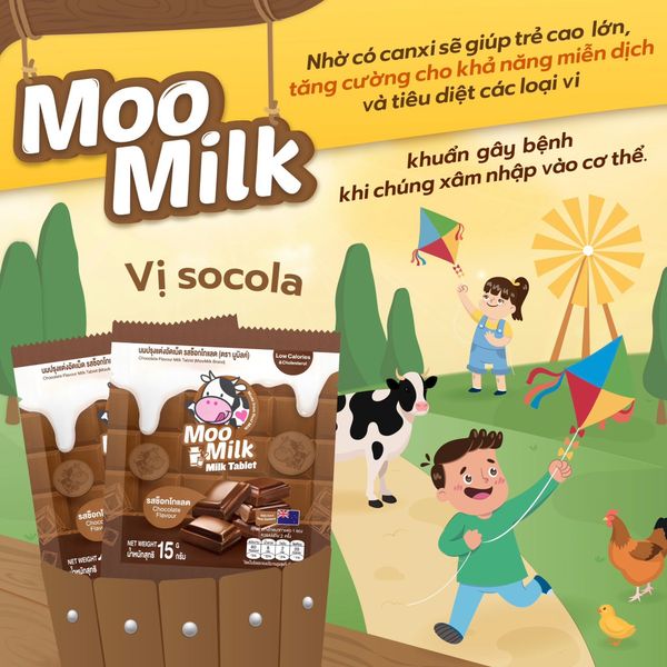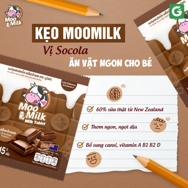 Socola trong kẹo MooMilk giúp cung cấp năng lượng nhanh, giúp học sinh, sinh viên và người lớn tỉnh táo hơn trong công việc và học tập. Đây là lựa chọn hoàn hảo thay cho các món ăn vặt thông thường, giúp bổ sung dưỡng chất mà không gây cảm giác ngấy.