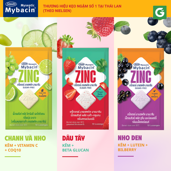Thực ra, ngoài thành phần kẽm (Zinc), công thức của Mybacin ZinC Plus còn có thêm nhiều dưỡng chất khác như Vitamin C, CoQ10, Lutein, Bilberry và Beta-glucan. Những thành phần này được kết hợp theo từng hương vị khác nhau của sản phẩm, tạo nên điểm đặc trưng riêng cho mỗi loại.