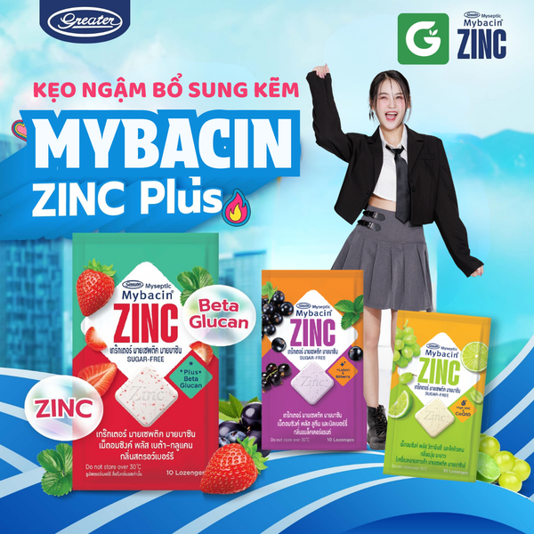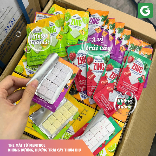 Nhờ vậy, Mybacin ZinC Plus mang đến lựa chọn kẹo ngậm với hương vị trái cây, cảm giác the mát và công thức không đường.
